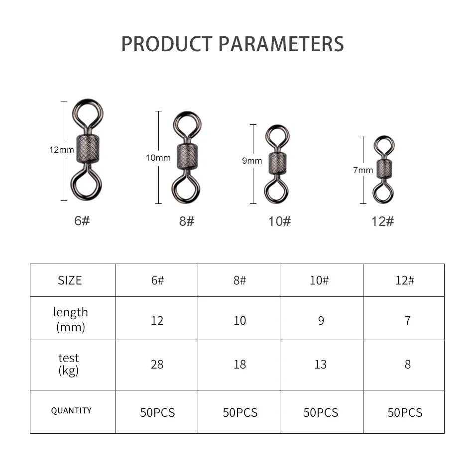 MEREDITH Fiskesvivel med kulelager – 50 stk pakke med sikkerhetslås og solide ringer, rullende svivel for karpefiske